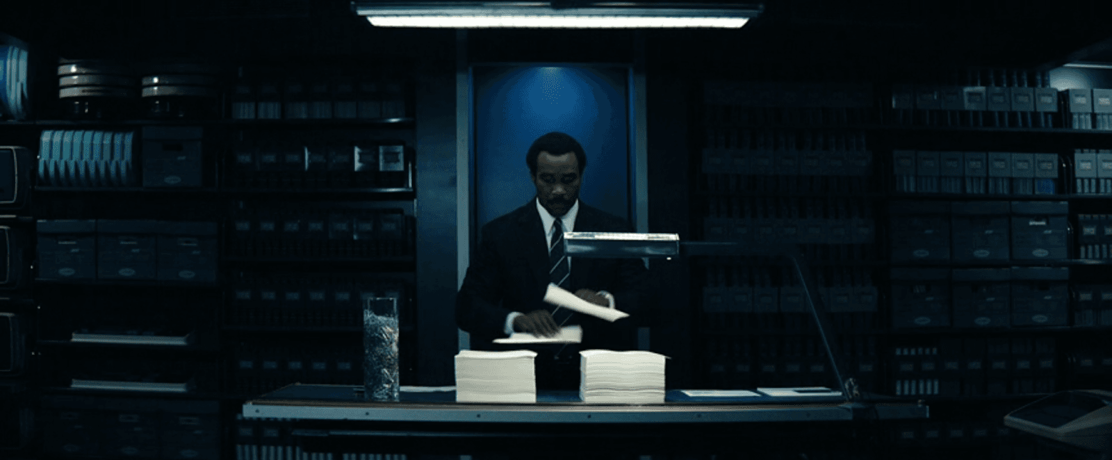 But Milchick responded this week with the kind of vision, verve, and humility that would make (Black?) Kier Eagan proud. Although he started Episode 6 by using more of the “big words” that earned him one of the three contentions in his report, Milchick spends the rest of his day working to improve on his perceived shortcomings. Someone complained about his paper clips being placed back-to-front instead of front-to-back? No sweat, he’s already locked himself in the back room of his office, getting reps in like he’s practicing his jump shot at the gym after a bad loss. I mean, look at how high these stacks of paper are (and notice that cross-arm motion in his form!):