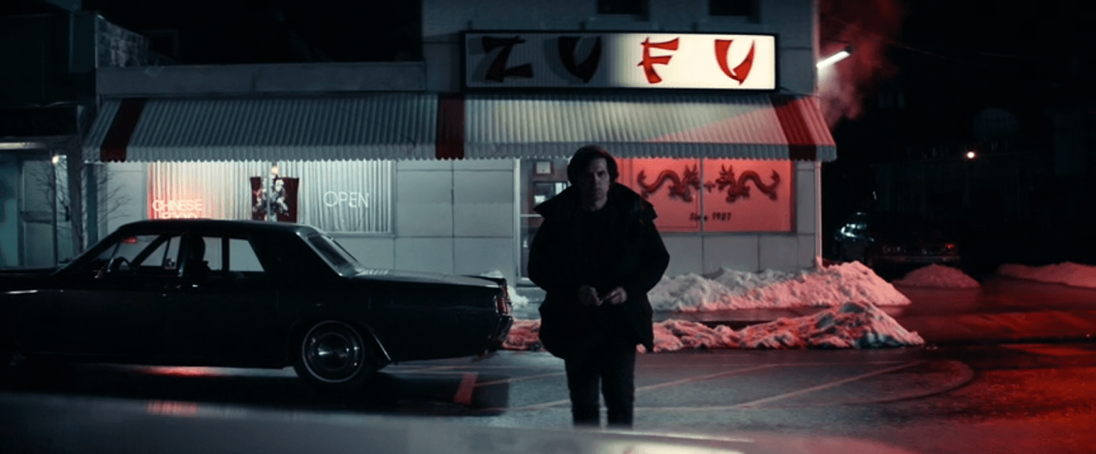 Later in the episode, we also see the busted signage of the Chinese restaurant, Zufu, with only half of it lit up: