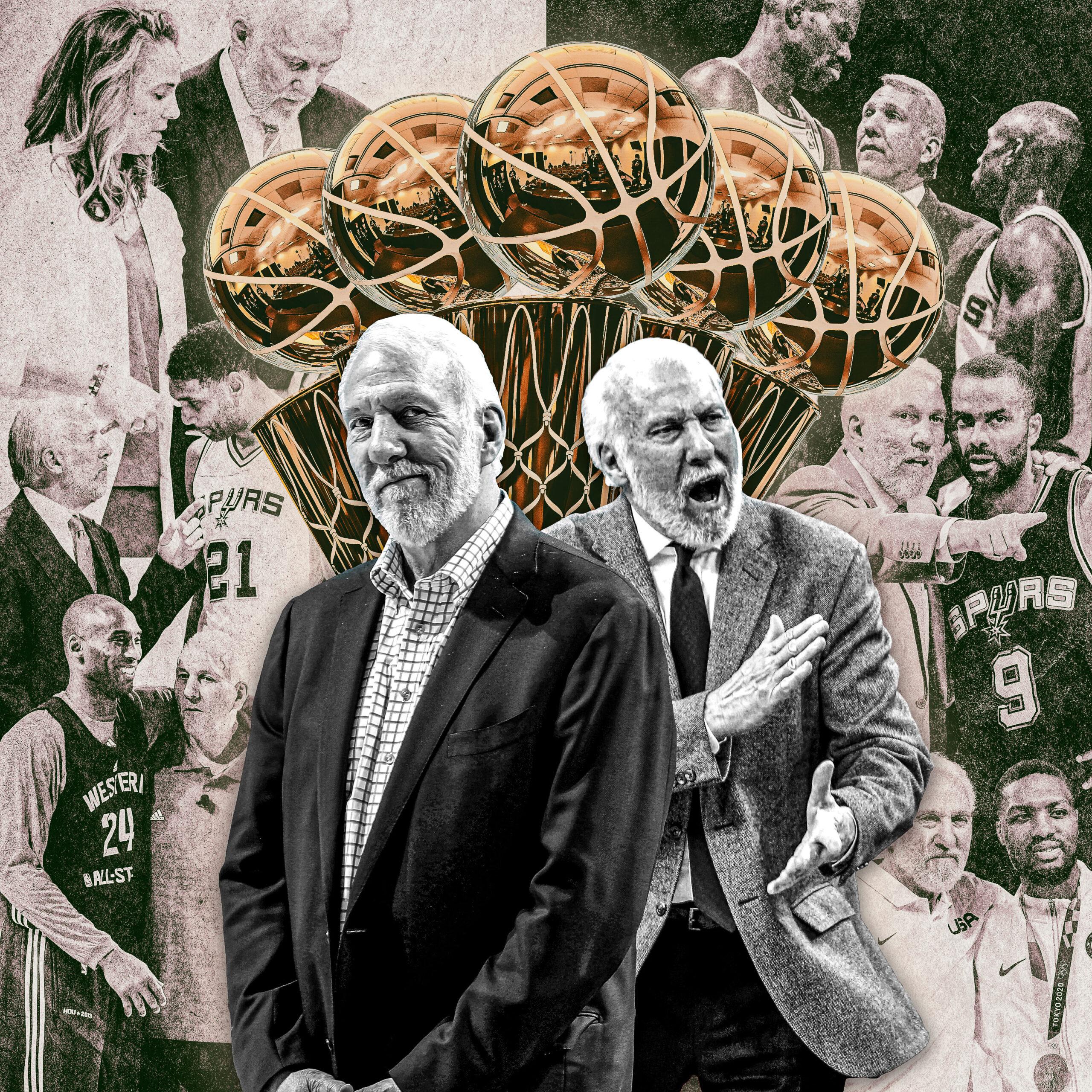 The NBA is a player’s league, through and through, yet for much of this century getting past the Spurs really meant getting past Popovich. In a recent episode of Mind the Game, LeBron James and Steve Nash went deep while slumped in lounge chairs, laughing and reminiscing in solidarity about the traumas they’d faced competing against Popovich in the 2000s. “When you play the Spurs, not only are you trying to defeat the Hall of Fame players, you’re also trying to defeat the Hall of Fame coach,” LeBron said, before Nash cut him off, exasperated: “Can I stop you there for a second? Like, was Pop a spy?” As Nash went on a wink-wink conspiratorial spiel, the cameras focused on LeBron’s hand emptying a bottle of wine into his glass.