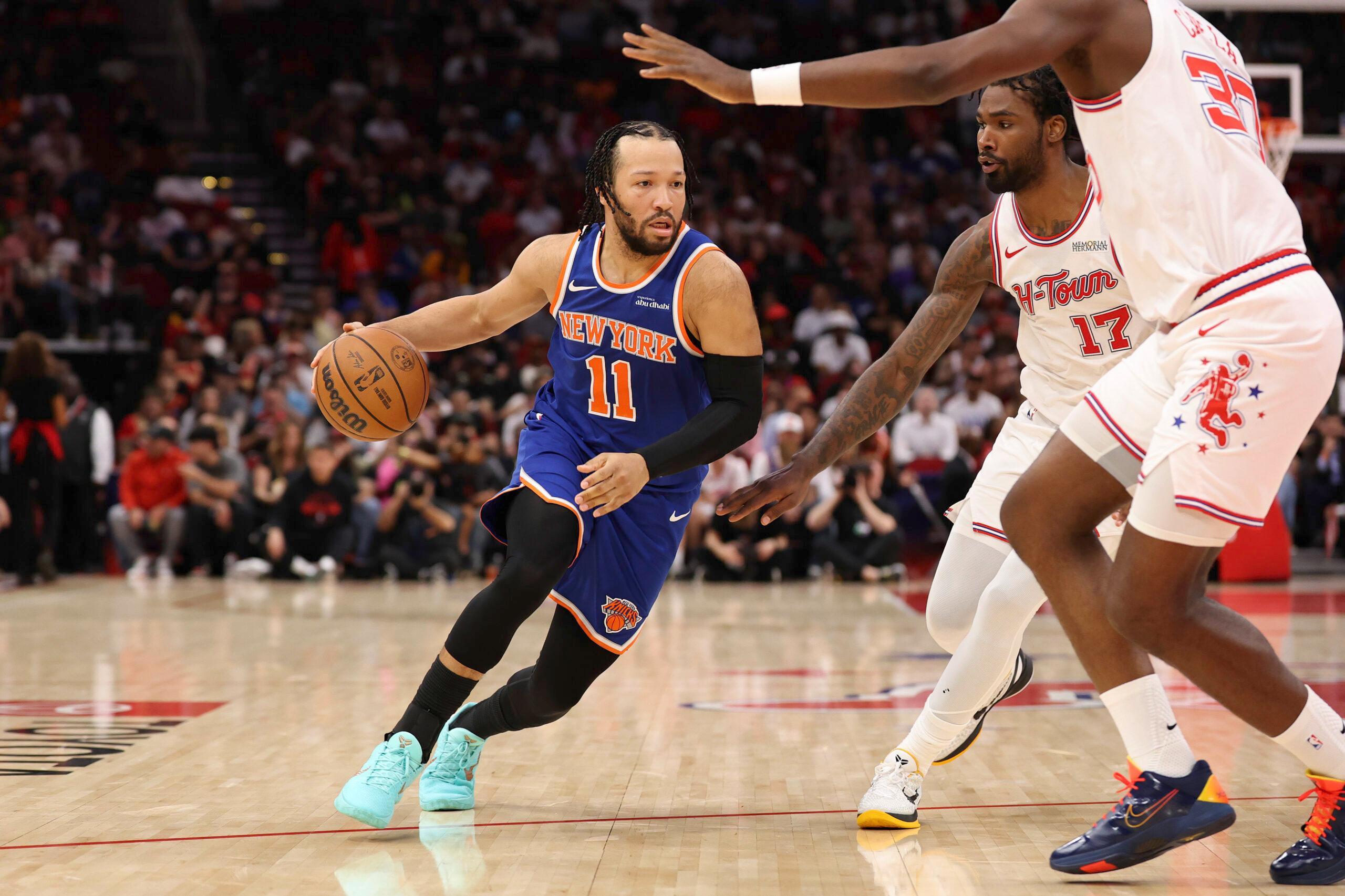 Jalen Brunson drives to the basket against the Houston Rockets