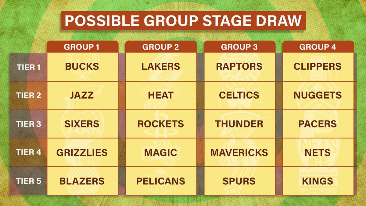 The 16 current playoff teams would qualify for the group stage, plus the four teams with the next-best records (Trail Blazers, Pelicans, Kings, and Spurs). The remaining 10 teams would be done for the season. The survey sent to each general manager noted that “tiers” would first be created using the regular-season standings to ensure competitive balance between the groups.