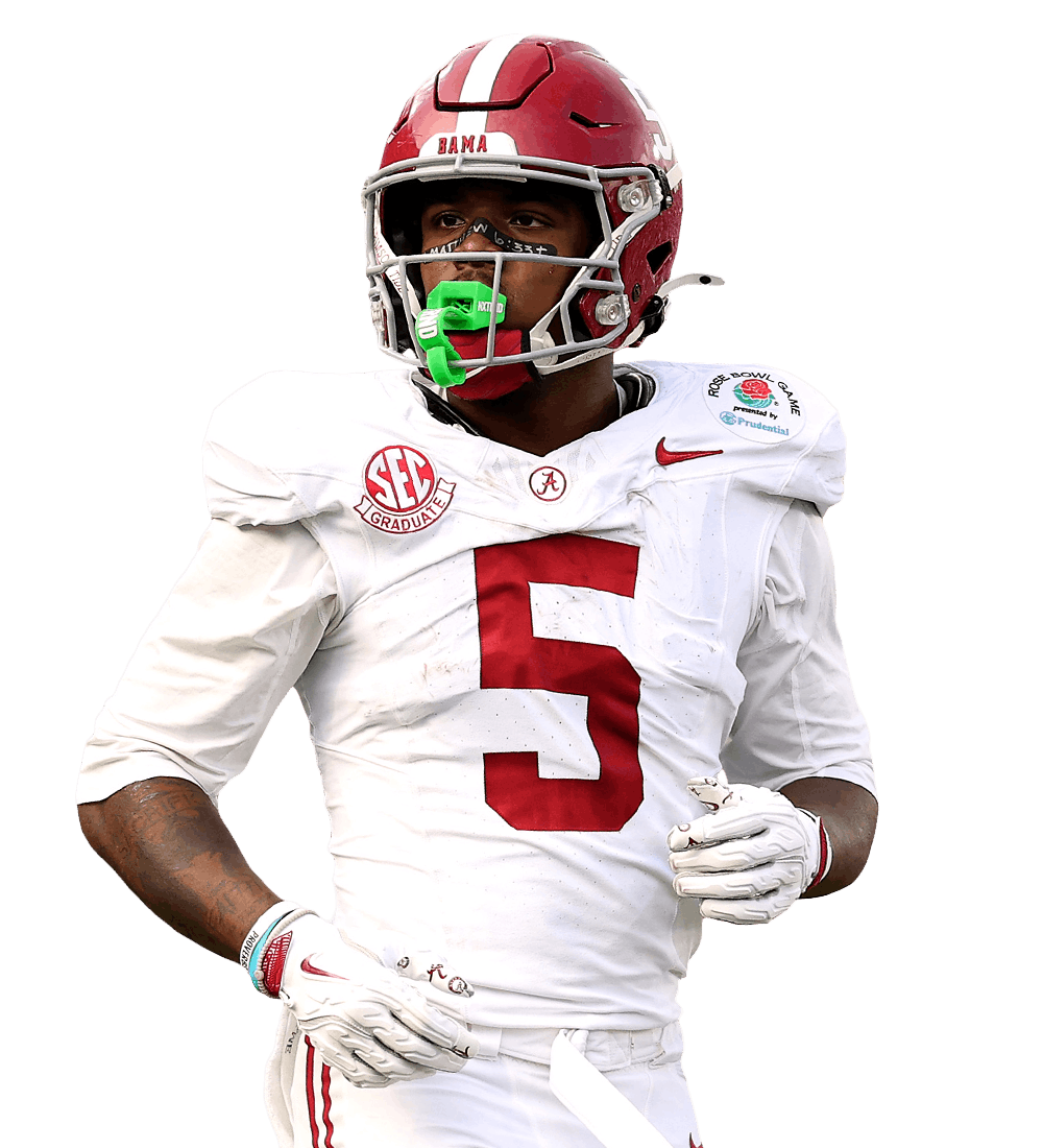 Bernard is a tightly packed receiver with good but not elite top-end speed. While he isn’t a burner or an ankle-breaker, he heats up quickly (1.52-second 10-yard split), and the combination of redirection quickness and body control that we saw on his tape was confirmed by an elite three-cone time of 6.71 seconds at the combine. He knows how to read coverage, understands option routes, and stays on the same page with his quarterback. Bernard had three stops in four college seasons: one season at Michigan State and one at Washington before transferring to Alabama for 2024-25. He was the Crimson Tide’s leading receiver in both those seasons, with a combined 110 catches for 1,576 yards (14.5 yards per catch) and nine touchdowns.