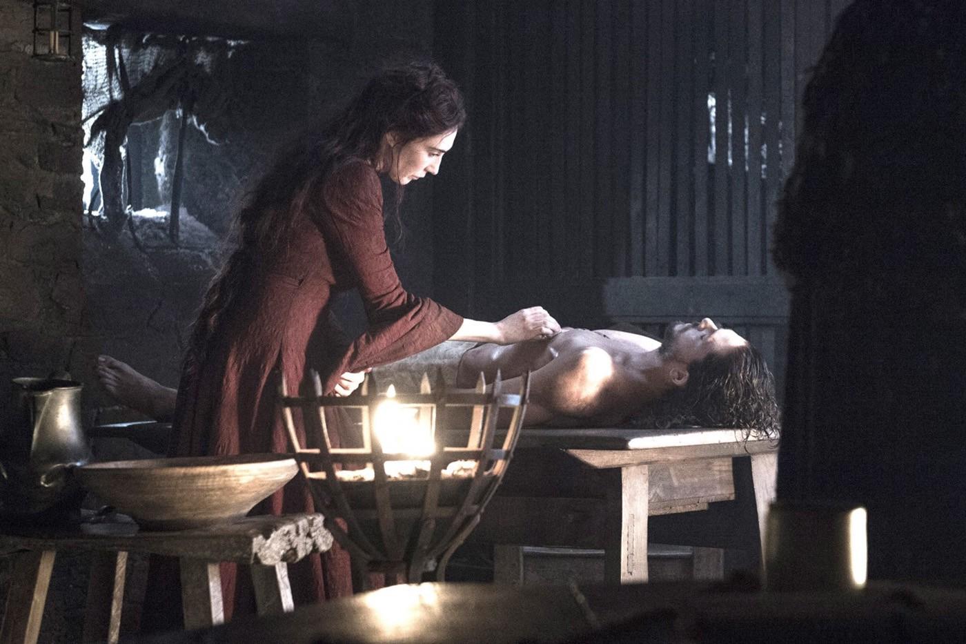 You’re calling that R’hllor jam session easy? In terms of process — a little snip, a quick body wash, some Valyrian freestyling — sure. But even that was practically trigonometry compared to how Thoros of Myr jump-started Beric Dondarrion by whispering in the dude’s ear. The thing that makes resurrection difficult to replicate, though, is the state of mind and faith of the person attempting it. Melisandre, like Thoros, was at her lowest point. She no longer felt a connection to R’hllor and doubted everything she had ever seen in the flames. She was totally humbled. At the peak of her confidence and smoke-baby-birthing powers, Melisandre could not have brought Jon back. Only when she was broken, desperate, and pleading was she able to.