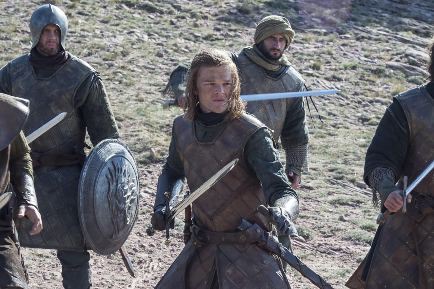 The presence of three Kingsguard knights (it’s three in the books; maybe that’s why Dayne wields two swords) at a nondescript North Dorne towerkeep is one of the foundations of the Rhaegar + Lyanna = Jon theory. You don’t use Kingsguard to guard a hostage; their place is with the king or his heir.
