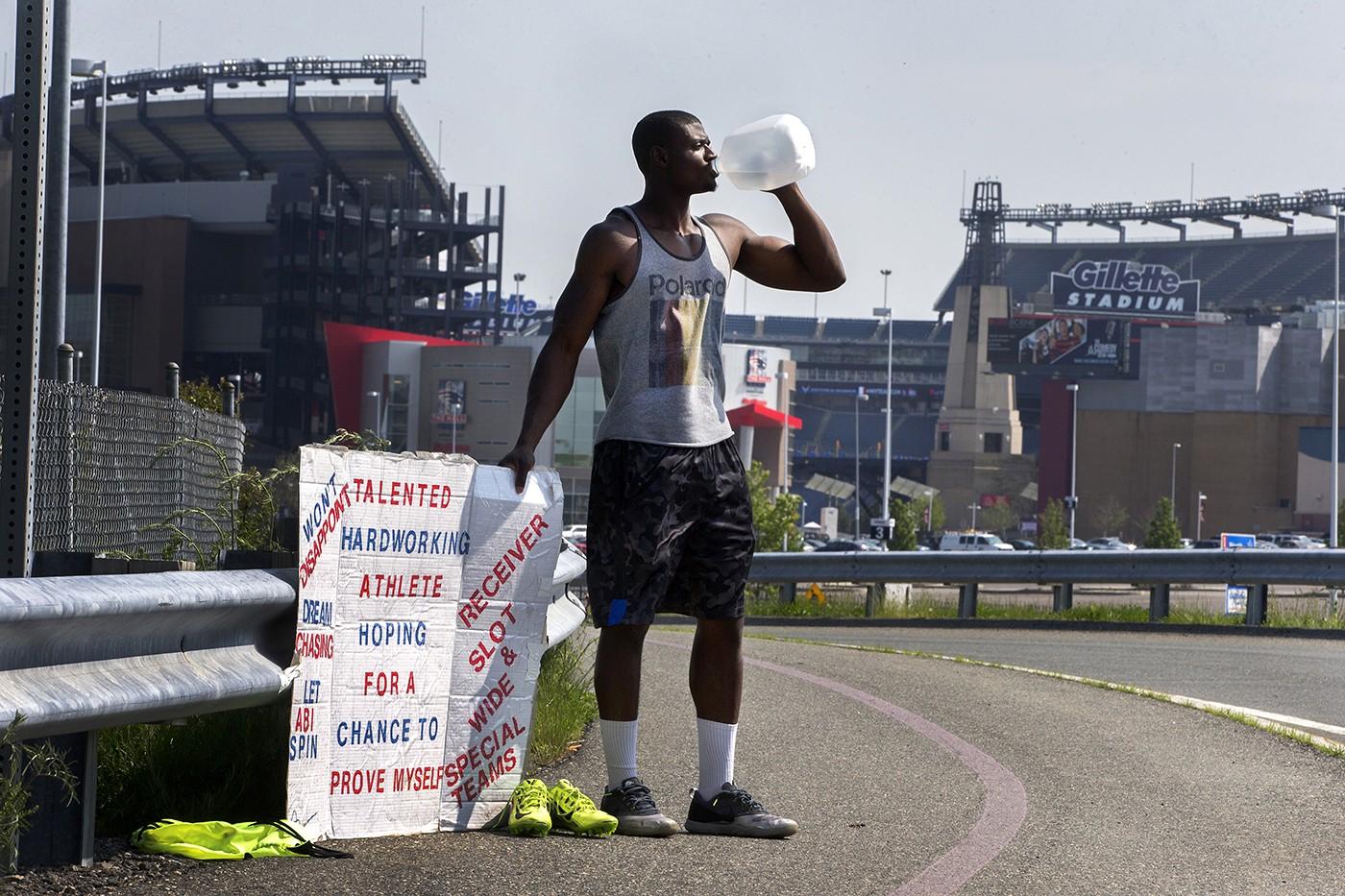 Wallace joins the ranks of many other athletes who have recently stationed themselves outside NFL facilities with handmade signs to try to land spots on rosters. Starting in April and as late as June 1, former UMass Dartmouth receiver Abiola Aborishade stood outside Gillette Stadium with a sign, making a similar plea to the Patriots. Texas Southern’s Joe Anderson held court outside the Texans’ NRG Stadium last fall, already dressed in workout clothes (“Not homeless … but STARVING for success!!!”), while Towson’s Monte Gaddis waited outside Browns HQ (“Starving for my 1st shot. Why not?”).