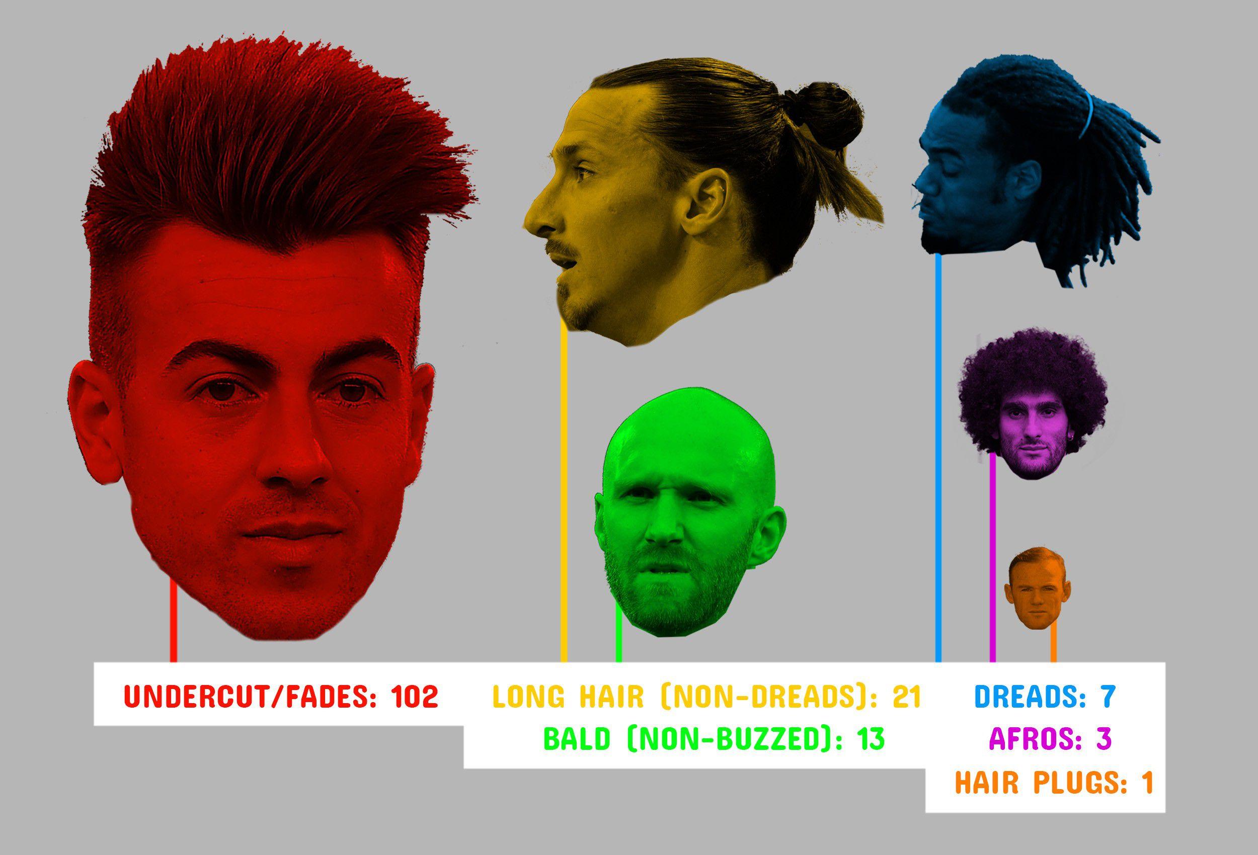 Hair affords soccer players the opportunity to express themselves. It lets them transcend the anonymizing effects of their uniforms. When you watch Euro 2016, you will marvel at the amount of time and the quantity of product required to hold Stephan El Shaarawy’s Super Saiyan–esque blowout in place; you will dip your chin against your chest in a reflexive sign of respect for the swag-drenched, bleach-outlined “POGBOOM” razor script adorning Paul Pogba’s head; and you will understand the unhappiness that caused Wayne Rooney to get hair plugs.