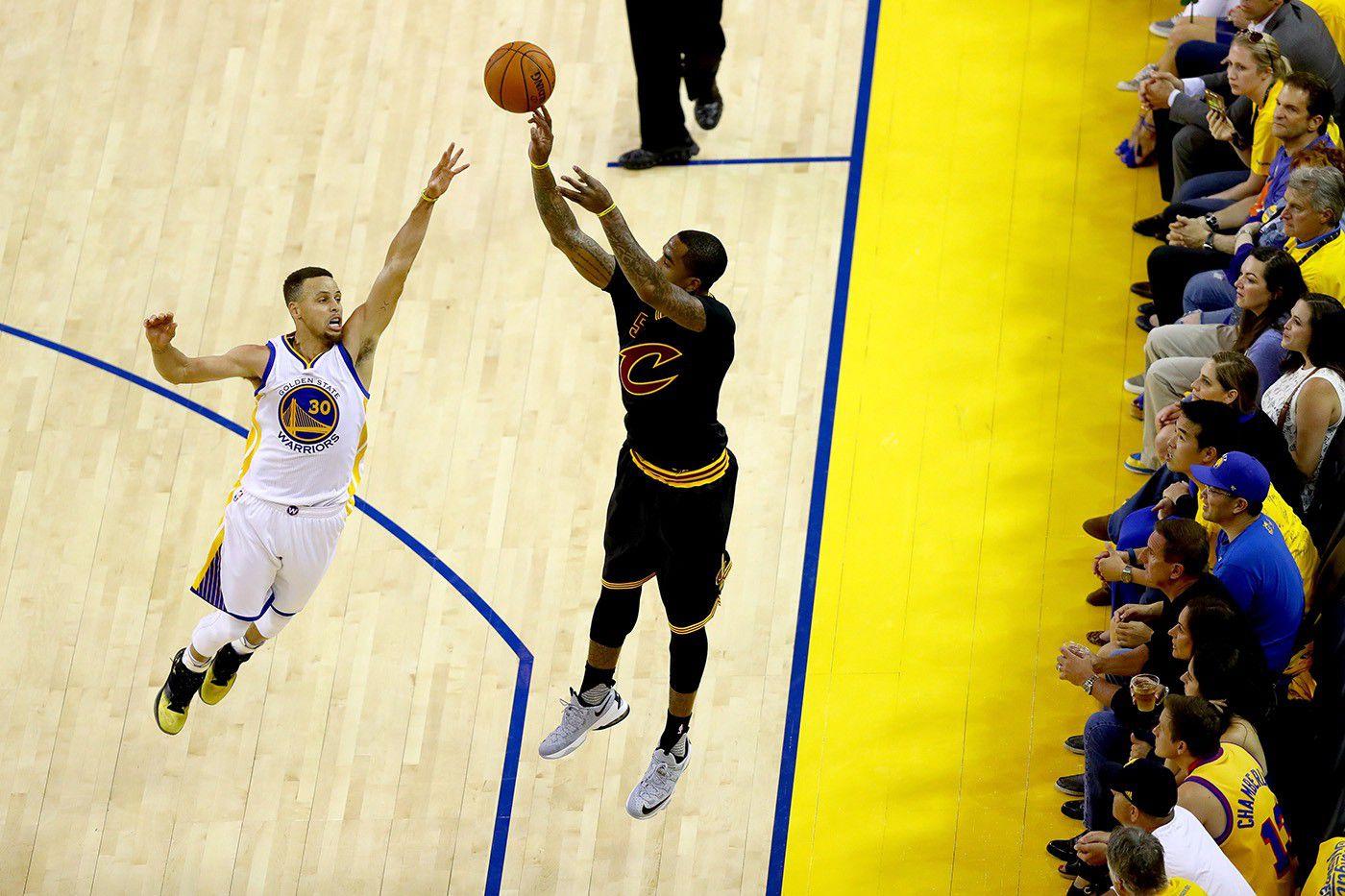 This was the shot that essentially won Cleveland the championship, and I think Steph Curry knew it. Watch the bump — the little hip check that Kyrie Irving throws as the ball goes through the net. Everything about the back half of this Finals is in that bump: Cleveland’s resilience and Golden State’s … just-not-right-ness.