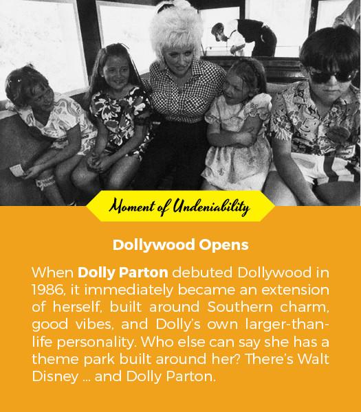 A precocious talent with a brassy voice, Dolly Parton appeared on Tennessee legend Cas Walker’s show when she was 10, made it to the Grand Ole Opry by 13, and from there things just snowballed. She rose to prominence singing with country star Porter Wagoner on his syndicated TV show, but her self-penned solo hits — “Coat of Many Colors,” “I Will Always Love You,” “Jolene” — began to climb the charts and by the mid-‘70s she’d eclipsed him. That Barbara Walters interview is a snapshot of Dolly at a transitional moment, ready to make the move from country music superstar to regular old household name. “I’m not near where I dream of being,” she says at the end of the clip with unshakable self-confidence, looking dreamily toward a future that even then she seemed to know would include loads of accolades (eight Grammys!) a bunch more no. 1 hits (25 in all, a record for a female artist on the country charts!), starring roles in movies (it’s easy to forget that her charismatic turn in Nine to Five was her film debut), and, of course, an entire goddamn amusement park dedicated to herself.
