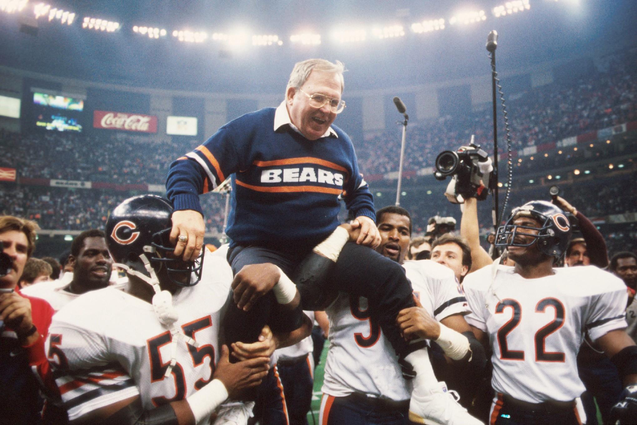 On the eve of that year’s Super Bowl, against the Patriots, Ryan gave a speech from which his players inferred that he was leaving after the season to become the Eagles head coach. After an initial moment of shock, Hampton drop-kicked a projector and defensive tackle Steve McMichael impaled a blackboard with a chair. The Bears then laid waste to the Pats, and Wilson and Dent carried Ryan off the field.
