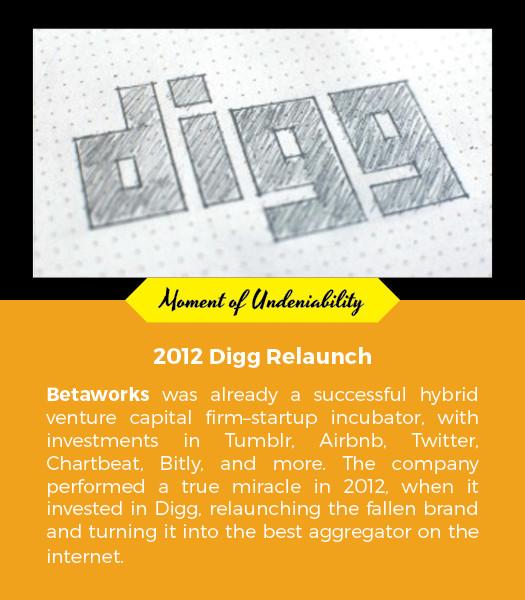 One of Betaworks’s greatest successes has been the 2012 relaunch of Digg. Before its revival, the beloved content-discovery engine was on life support. It had crashed and burned shortly after a particularly iconic BusinessWeek profile in and become an internet joke — the MySpace of aggregators. Digg was an important part of Web 2.0 and offered value to the internet … until it didn’t. So Betaworks decided to reinvent it.