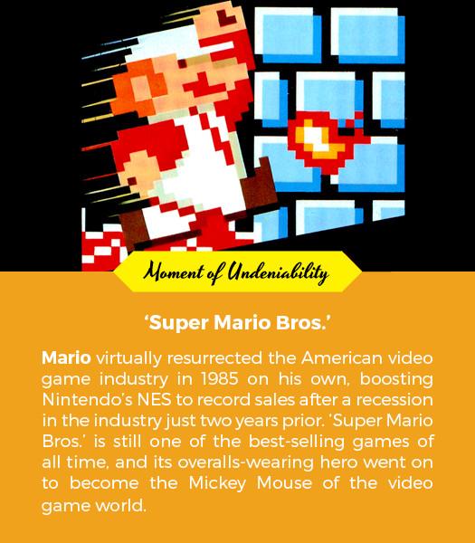 He first surfaced in 1981, in the arcade classic Donkey Kong, as a carpenter named Jumpman. (No relation.) But even as a squat, mute, barrel-jumping li’l sprite, the charisma was obvious. His creator: video-game demigod Shigeru Miyamoto, who’d started out with Popeye in mind until certain legal realities intruded. As author Blake J. Harris put it in his 2014 book Console Wars: Sega, Nintendo, and the Battle That Defined a Generation, “Who would possibly want to play a game where a tiny red plumber [sic] must rescue his beloved princess by hopping over obstacles tossed in his way by an obese gorilla?” Millions of people, Blake. Relax.
