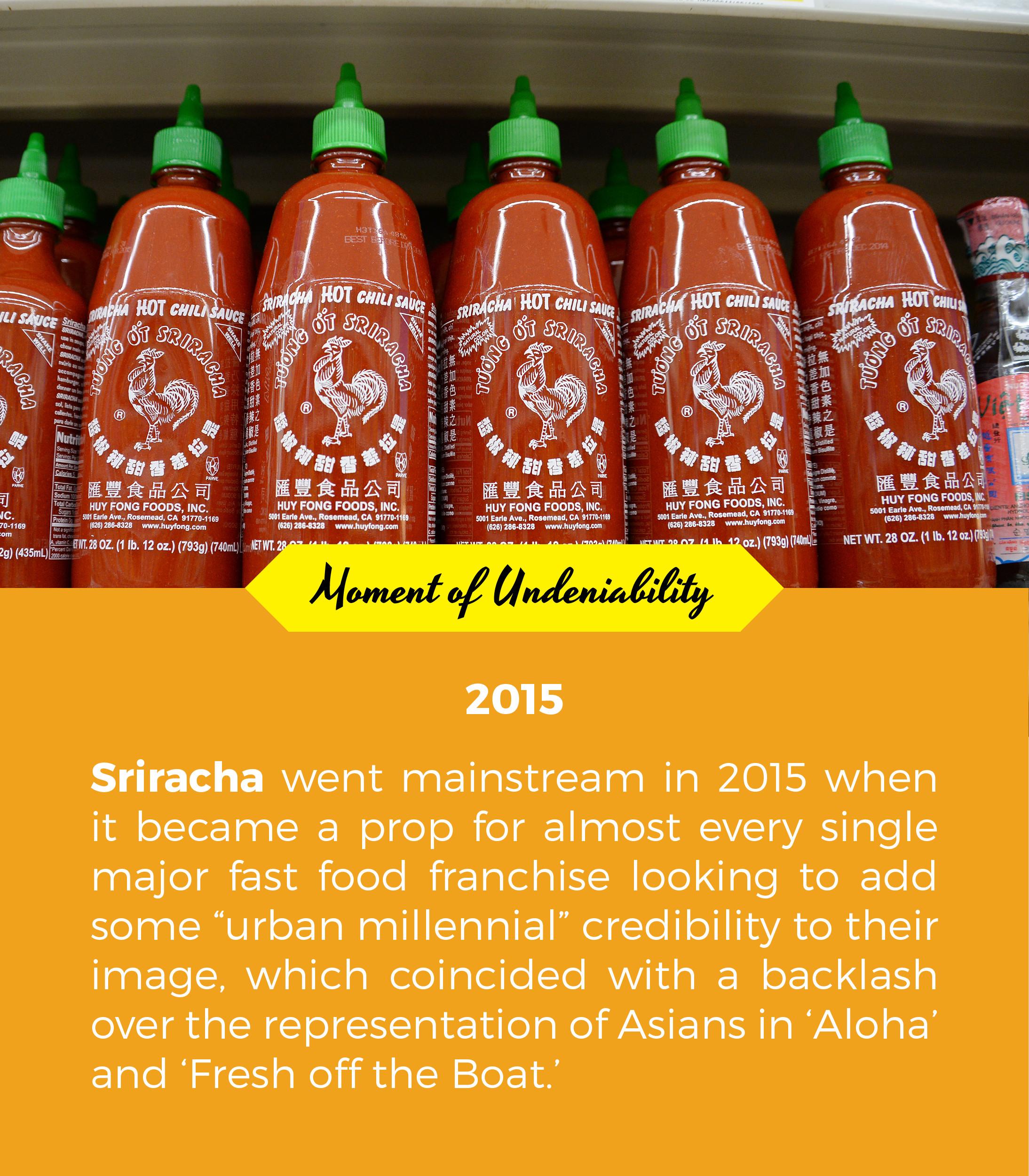 National establishments had begun harnessing the power of sriracha’s growing allure as early as 2000, when P.F. Chang’s began using it, but it wouldn’t become a full-on fast-food trend until 2015, when the industry co-opted sriracha’s cult appeal and turned it into a siren song for fast food’s target demographic: hipster stoners.