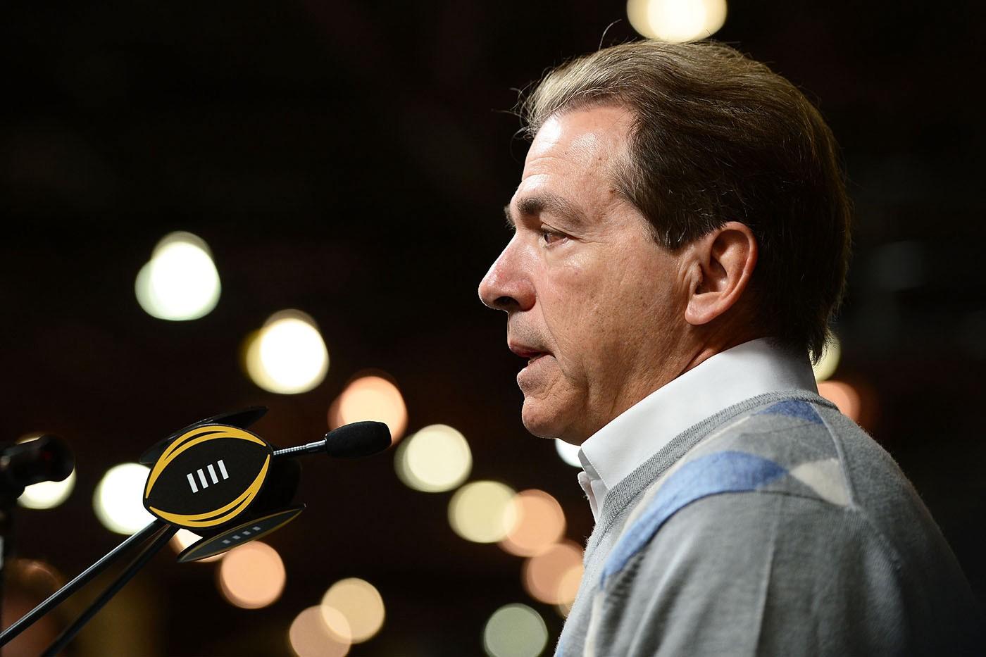 Today was Saban’s turn at the podium, and he treated us to the usual assortment of coachspeak and endless, Cruzian filibustering. Let’s translate what Saban said (WSS) into what Saban actually meant (WSAM).