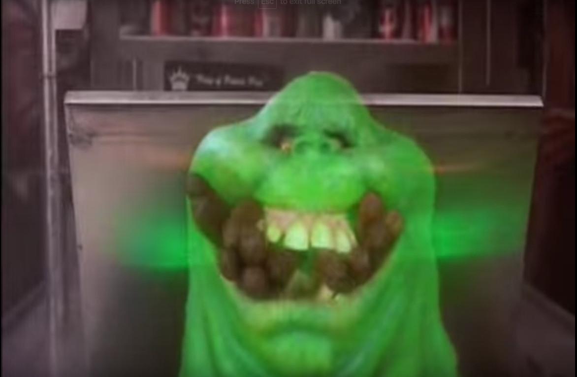 Amazing. Behold the sights and sounds and, somehow, luxuriant smells of chillwave being born. Mick Smiley’s pornographically ethereal “Magic” gets a full 90 seconds of screen time as we bathe in the finest special effects 1984 has to offer: a sperm-like spectral infusion swirling above the NYC skyline, a shrieking white bat-like apparition emerging from the subway, a Cryptkeeper-like dude commandeering a taxi, Rick Moranis staggering around looking disheveled, etc. Slimer rising from a food cart with a mouthful of hot dogs is a particularly indelible image.