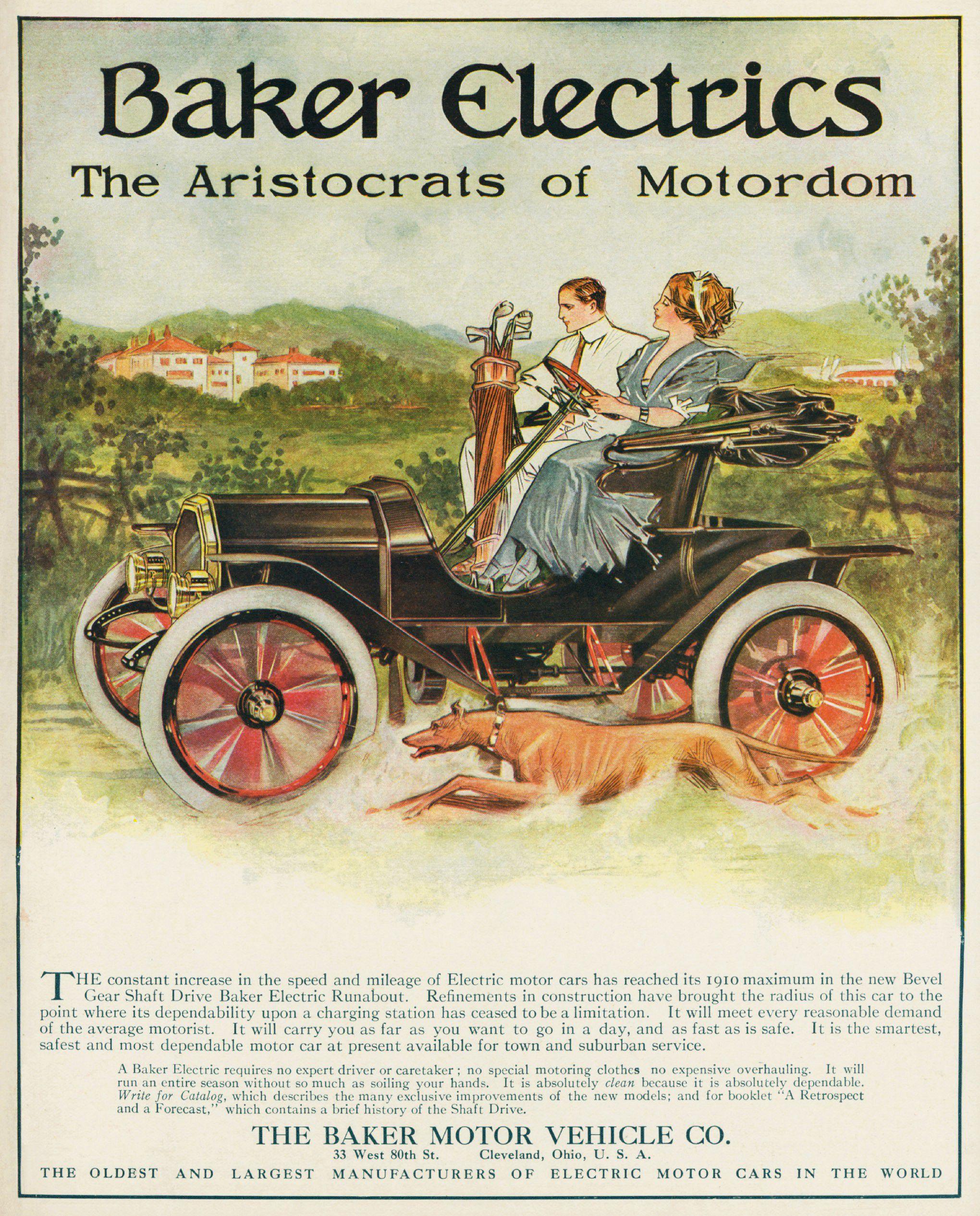 The vehicles were also popular among doctors, according to Garten. Bakers were better than gas-powered cars at handling adverse weather conditions such as rain and snow, so they proved useful for physicians making house calls. They also started more reliably, an important trait for a person trying to drive to a medical emergency.