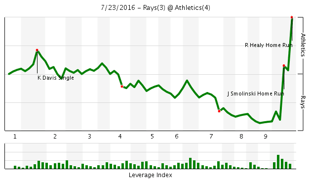 5 The WPA Graph of the Week goes to the Rays and Athletics.