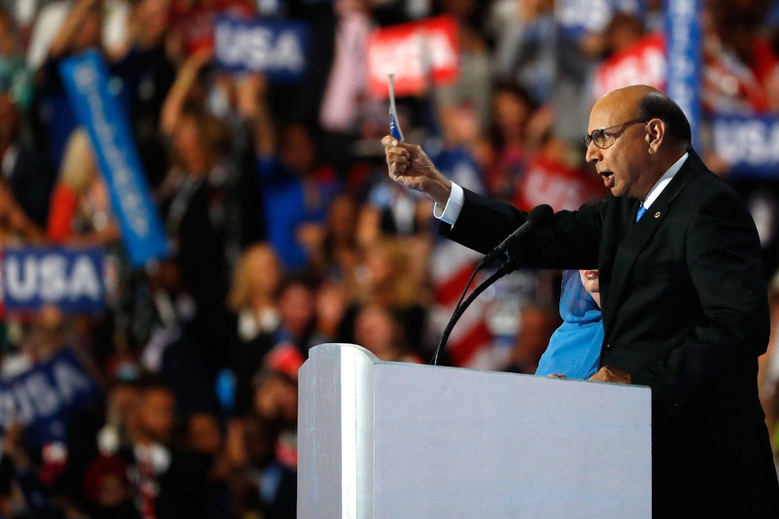 A “U-S-A!” chant started in the crowd but fizzled. Khan had too much gravity, too much grace. He addressed Trump slowly and emphatically. “Have you even read the United States Constitution?” he asked, to loud cheers. You thought he might end there. Then Khan reached into his coat pocket and pulled out what looked like an incriminating document. “I will gladly lend you my copy,” he said.