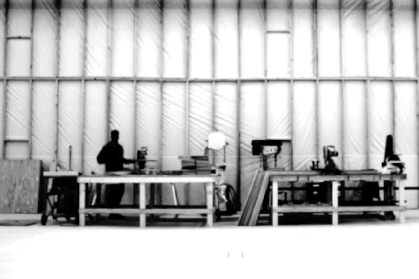 7:03 a.m. PT: There’s now a dude walking around the workshop sawing wood, accompanied by really beautiful, orchestral, ambient music. Is this the stuff that he was working on with French pianist Christophe Chassol at Abbey Road?