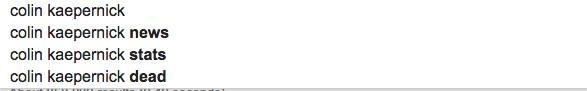 Kaepernick has scarcely been seen or heard from again. Actually, if you Google “Colin Kaepernick,” this is what pops up.
