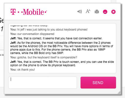 I chatted with a T-Mobile rep named Jeff for some more advice. He also suggests the Priv, for what it’s worth! Thanks for putting up with my spotty connection, Jeff.