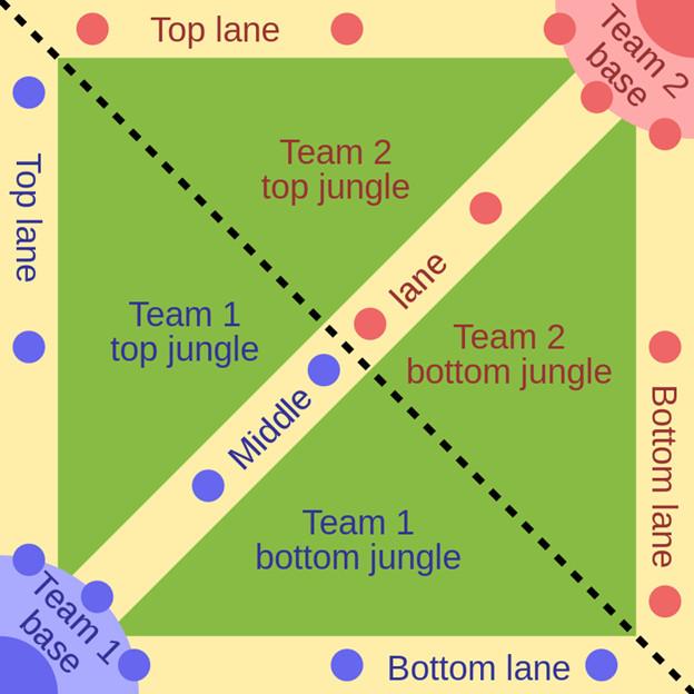 The diagram below shows the layout of a typical MOBA map: