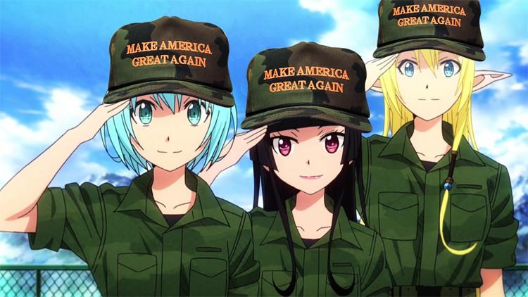 Moe trolls themselves are hardly passive. They brand themselves with character art from WWII-themed anime series such as Girls und Panzer or Barbarossa, or adorn more run-of-the-mill moe imagery with swastikas or “Make America Great Again” caps. Here’s Mio Akiyama, a shy high school bassist in the popular manga series K-ON!, reimagined by a fan artist as an SS officer.