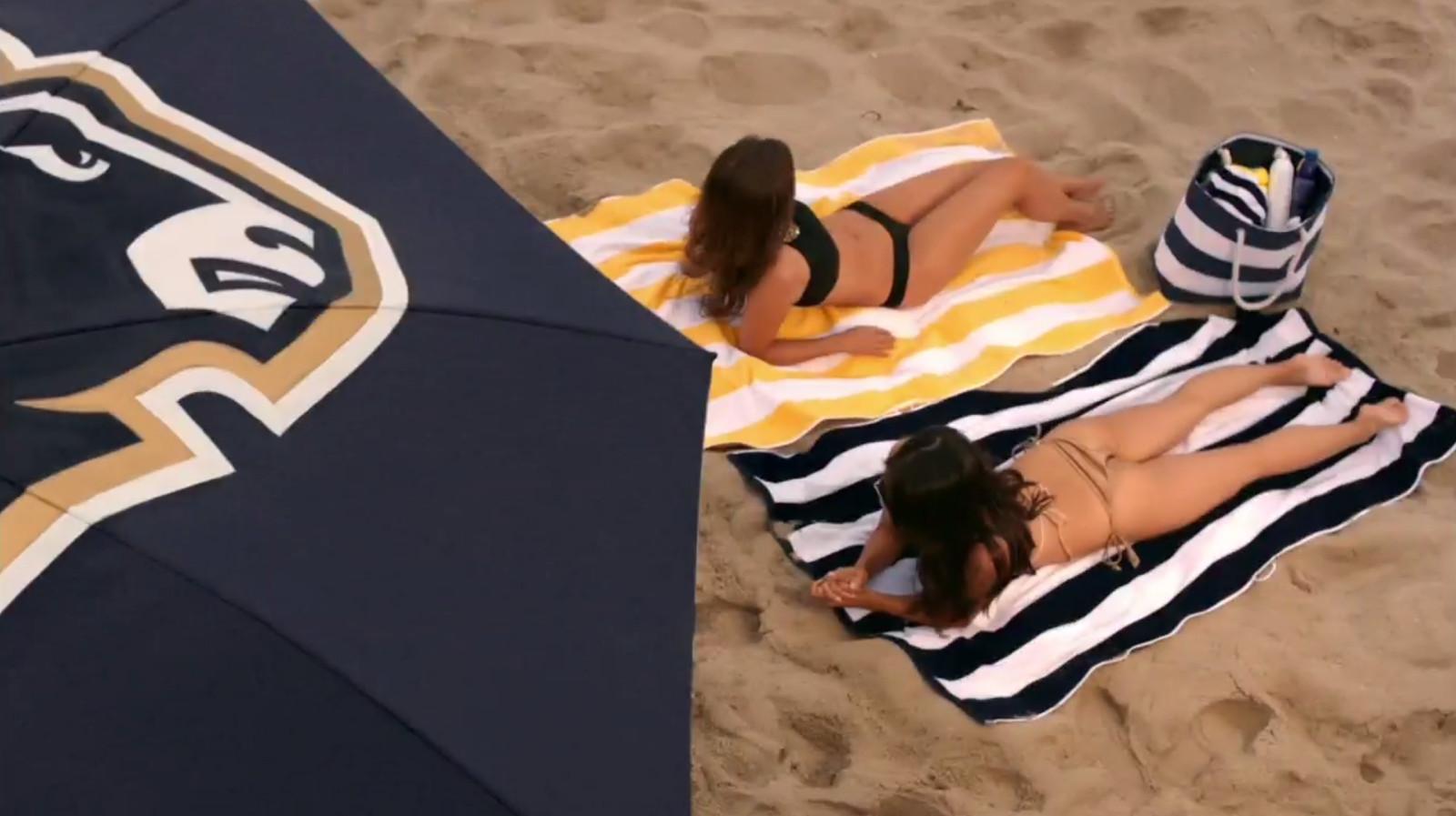 The episode’s opening intro depicts Los Angeles like you’ve always seen it before. As an unidentified Rams player runs along the Santa Monica coastline, bikini-clad ladies take a break from their strenuous tanning routine to gawk at him. They are lounging under a Rams umbrella, because TRUE Angelenos shill for Stan Kroenke on the beach.