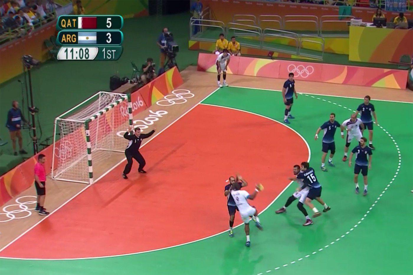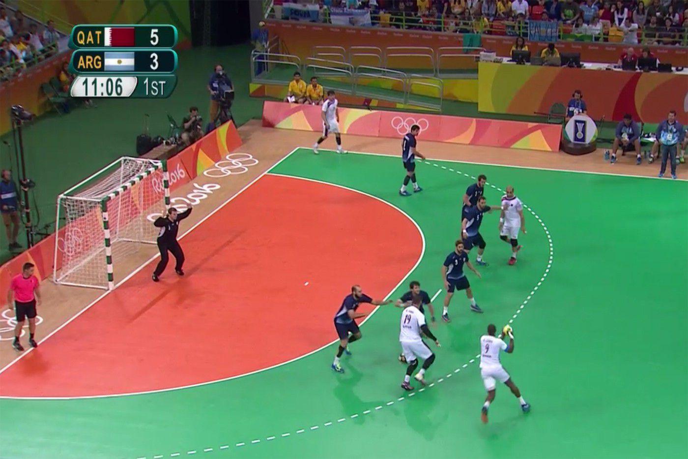 Handball is tailored to the lapsed NBA fan who feels displaced by the newer, softer generation of basketball: Hand checking is an inextricable part of handball; ball movement is mandatory, since players are allowed to hold onto a ball for only three steps or three seconds — you’re allowed to dribble, but it’s not ideal; the ball is the size of a grapefruit. Borja Vidal Fernández, a 6-foot-9 basketball convert from Spain who plays the pivot position for Qatar is often put in schemes that resemble basketball pick-and-rolls. But operational space on a handball court is limited — each goal is surrounded by a 20-foot-wide moat where only the goalkeeper is allowed to preside, and defenses largely cluster in a 5–1 formation that forms a fucking wall around that zone. Thus, the faux-pick-and-roll isn’t aimed to create a wide-open opportunity so much as it preoccupies defenders to allow for a secondary play. As a roll man, Fernandez essentially functions as a decoy, meat shield, and battering ram simultaneously.