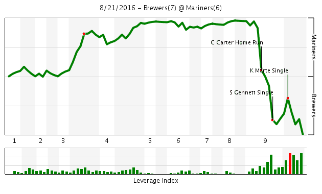 5 The WPA Graph of the Week goes to the Mariners and Brewers.