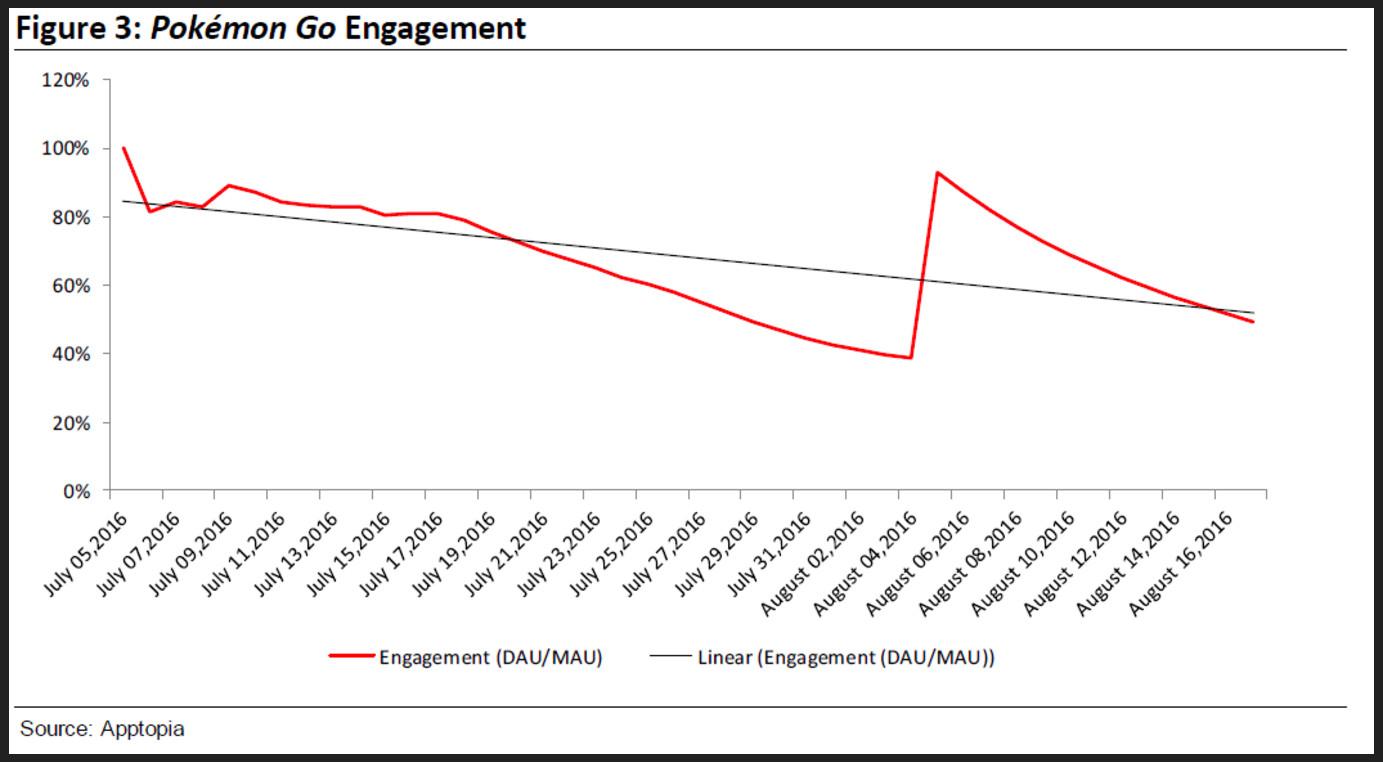 This decline could have come at the hand of many things. The app is buggy and users may have finally seen their last Google account login screen before giving up. Maybe some people, after catching their millionth Pidgey — without so much as a hint of a Snorlax in sight — quit. I’m certain at least a few users weren’t willing to sacrifice a data overage.