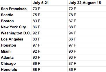 Armed with this assumption, I took the list and the new data on Pokémon Go engagement over the past month, and cross-checked it against Weather Underground’s historical weather data. And guess what? It definitely got hotter as app engagement did the opposite.