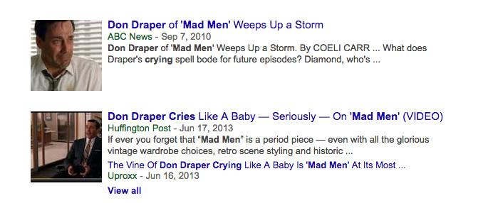 - If we counted Crying Don Draper as its own character, the lachrymose ad-exec would be the most-content rich character in history, with a CUPS in the range of 75,000.