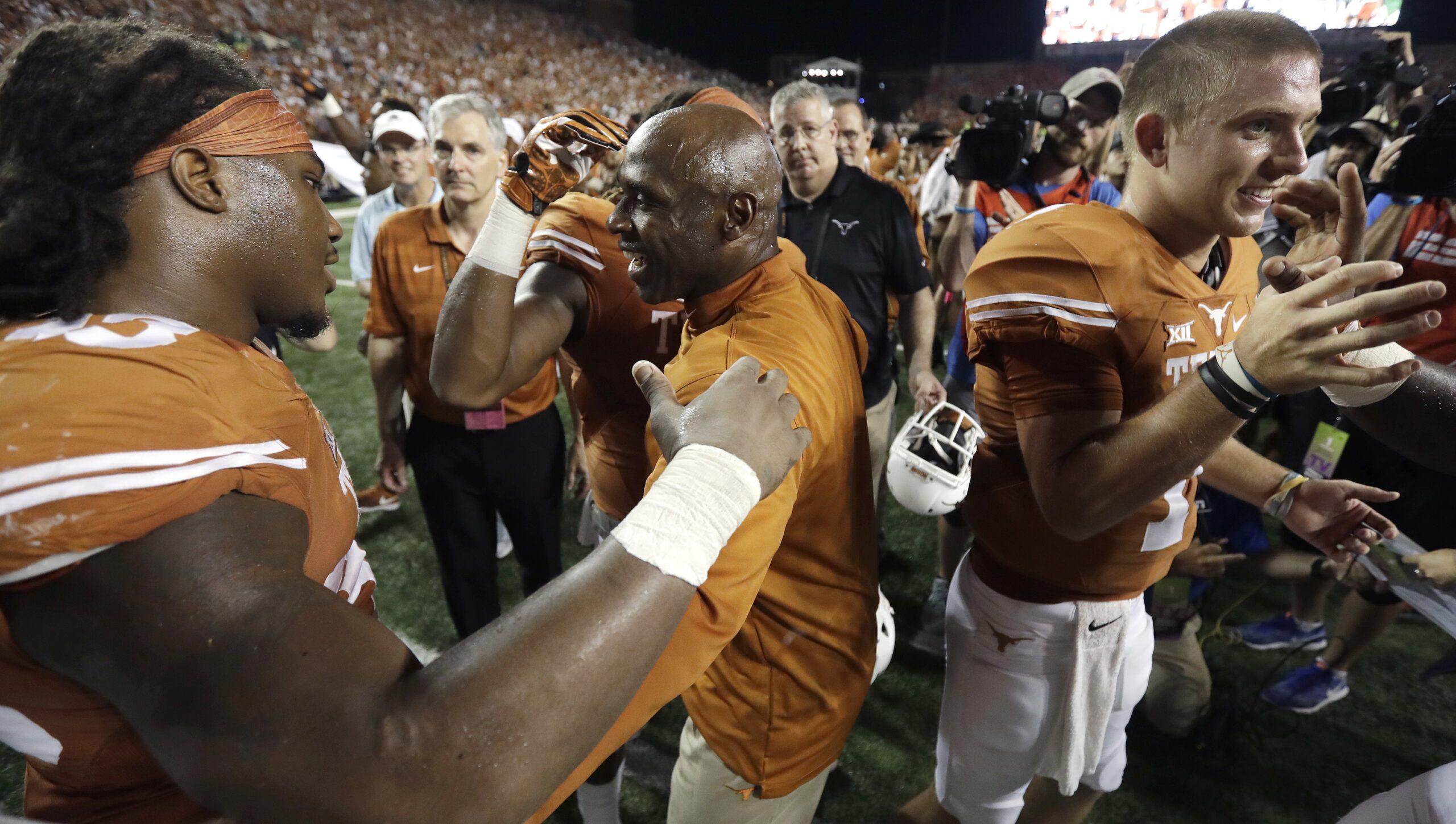 Two plays later, Swoopes stepped left to make a blitzing lineman whiff, then dove forward and stretched the ball into the end zone. Texas had its best win of the Strong Era. Texas is back, every person with a television show will declare in the next 24 hours. The QB platoon was a “brilliant changeup,” ESPN’s Joe Tessitore said. You could almost see Charlie Strong’s satisfied smile as his players threw him into the air.