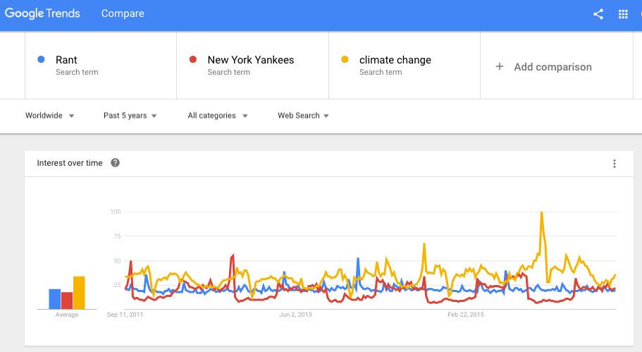 Google Trends data shows that, over the past five years, the term “rant” was searched more often than “New York Yankees” and about 75 percent as much as “climate change.” In the age of YouTube, rants are just another form of entertainment. A YouTube search for rants returns 1.3 million results. A video of comedian Rob Paravonian ranting about Pachelbel’s “Canon in D Major” currently has over 13 million views.