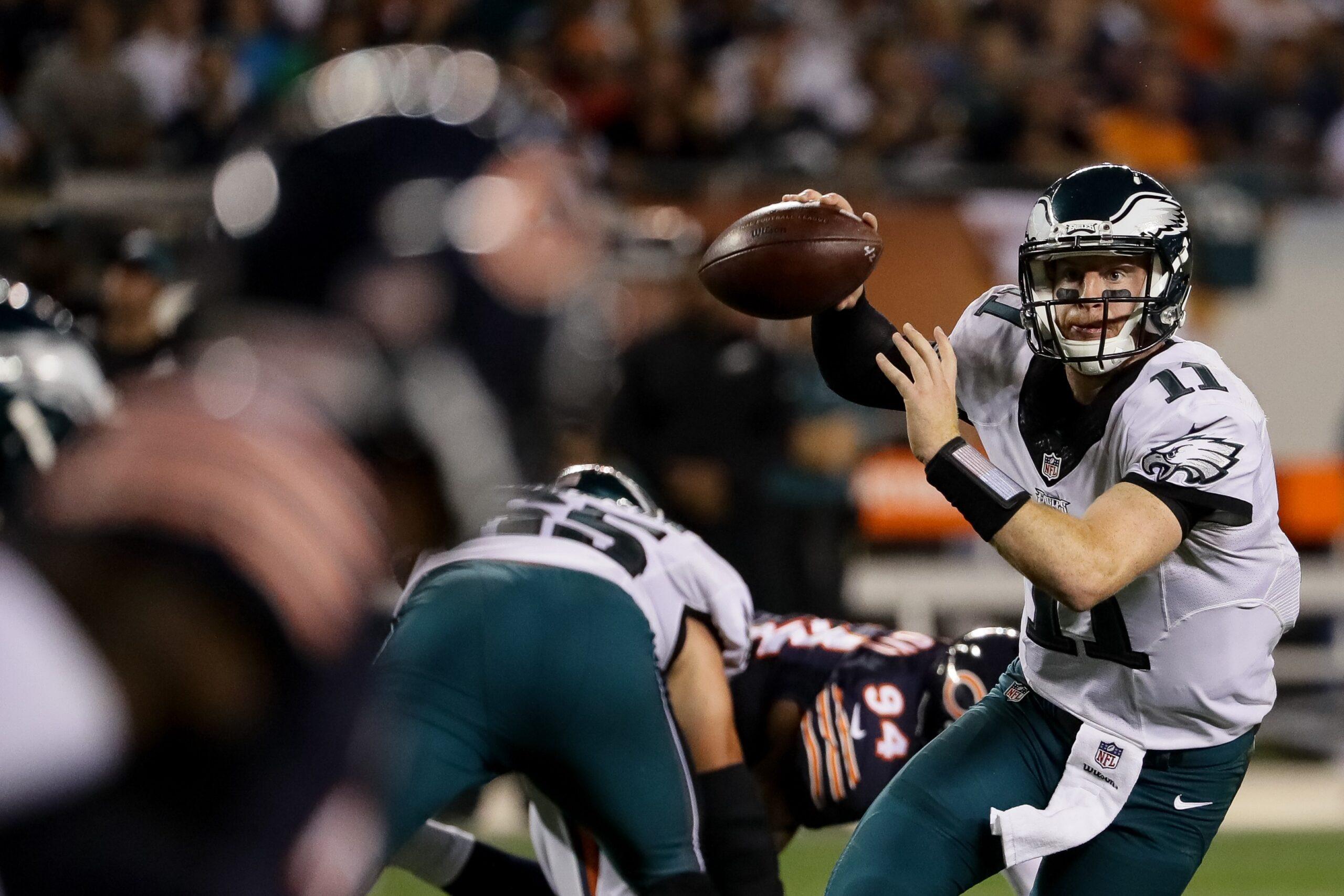 The Eagles’ rookie quarterback will lose a game someday, but if he’s not careful, he’s going to lose more than that. Like his spleen. Chicago laid so many big hits on Wentz during its Monday night loss to Philly, the rookie had to change his jersey number from 11 to 25 or 6 to 4.