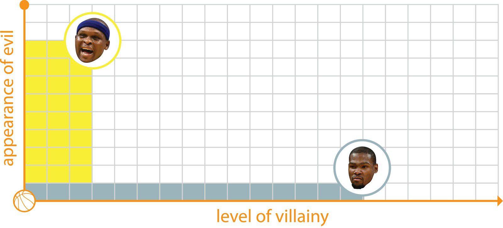 To measure the greatness of a basketball villain, plot his Level of Villainy on the X-axis. Plot his Appearance of Evil on the Y-axis. You connect those two sections, shade in the total area, and there you go. The greater the area covered, the greater the villain.