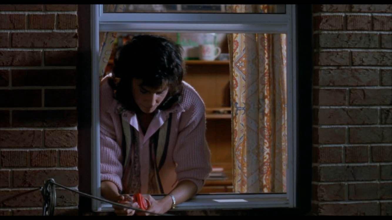 The next time we see Mrs. Baskin it’s over a month since her son disappeared and she’s sitting in Josh’s room on the floor holding his walkie-talkie. She clicks the button. Billy, who’s in his room in the house next door, hears it. He thinks it’s Josh, so he hustles over to the window. He sees Mrs. Baskin alone, mourning. He says hello through the walkie-talkie. She looks up, partly surprised but mostly embarrassed. She opens the window. Billy tries to small talk with her as a way to make her feel better. It doesn’t work.