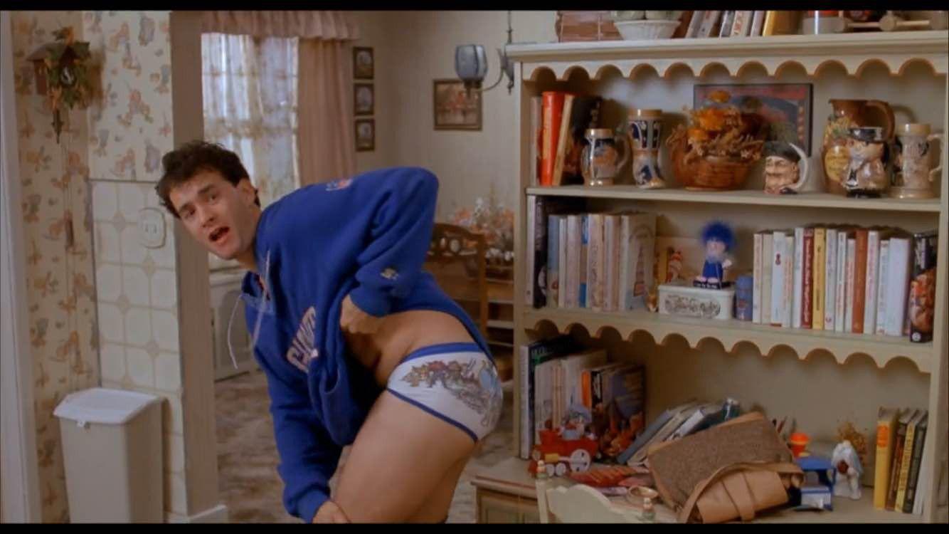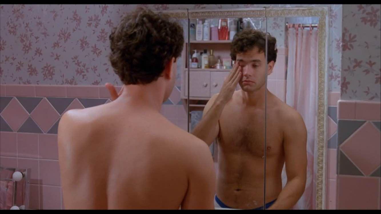 After Josh accepts that he’s actually a man and it’s not a dream, he sneaks out of the house before his mom sees him and rides his bike back to the carnival site (presumably so he can wish himself back into being a kid again). The carnival is gone, though, and so is the “Zoltar Speaks” machine. He pedals back home. He busts in the house as his mom in vacuuming, hoping to explain what’s happened. She sees him, then begins to panic because she thinks a strange man has just entered her house unwanted, because a strange man has just entered her house unwanted. She starts to whimper. “Don’t. Please. Don’t. Don’t. Please,” she begs. He apologizes, runs out, wipes his feet, then runs back in.