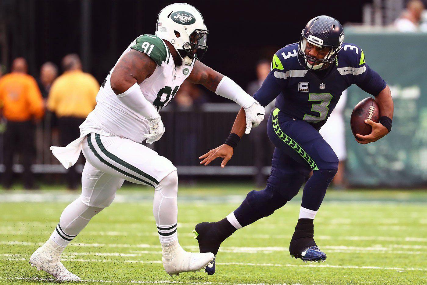 1. I guess Russell Wilson doesn’t need two good knees. Playing with a sprained left knee and wearing a customized brace, Wilson was brilliant in a 27–17 win over the Jets. He went 23-of-32 for 309 yards with three touchdowns, and his signature drive came at the start of the second quarter, when he completed all four of his attempts. One was a beautiful, 27-yard, over-the-shoulder toss to Jimmy Graham up the seam; another was a 38-yard strike to Doug Baldwin that Wilson threw on the run after escaping trouble.