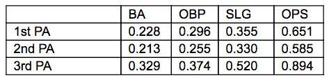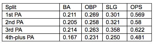 This is Hendricks’s 2015 opponent batting line by time through the order: