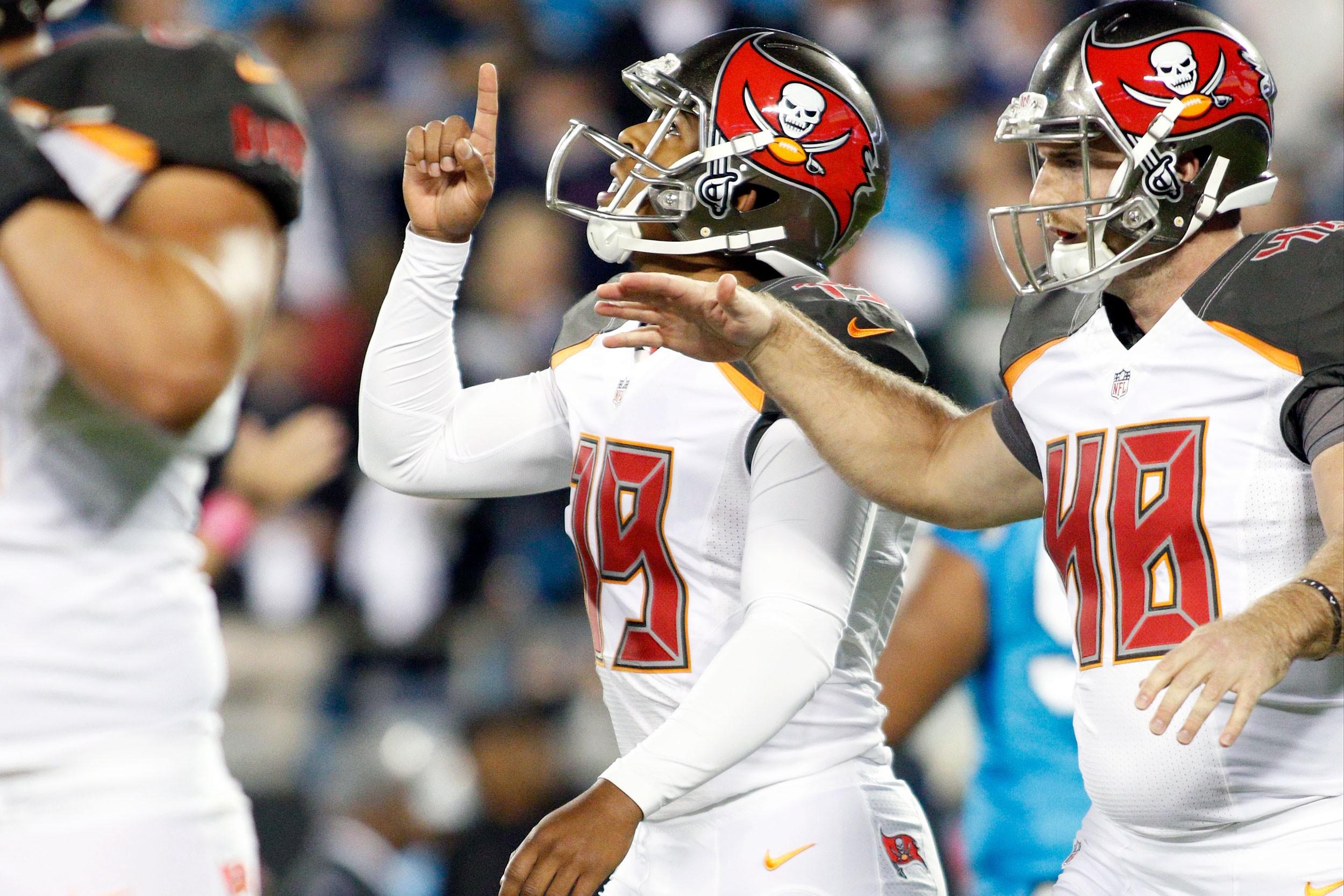 The Bucs beat the Panthers, 17–14. Tampa Bay improved to 2–3; Carolina fell to 1–4. It was a night full of false-start penalties and Derek Anderson interceptions and Jacquizz Rodgers scampers and Jameis Winston overthrows and decisions to (shhhh) change the channel and watch playoff baseball instead. It was also a night in which Aguayo, whom the Bucs traded up to select in the second round of the 2016 draft, connected for his fourth field goal in eight career attempts. Just look how happy it made him.