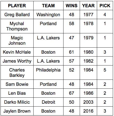 The patience of ownership and the front office has put the Celtics in a unique position. Last season they became only the 10th team over the last 40 years to win more than 45 games and select a player in the top five of the NBA draft, choosing Jaylen Brown from Cal. With Nets picks still in their possession (the rights to swap in 2017, and unprotected in 2018), they could conceivably do it for a second and third season in a row.