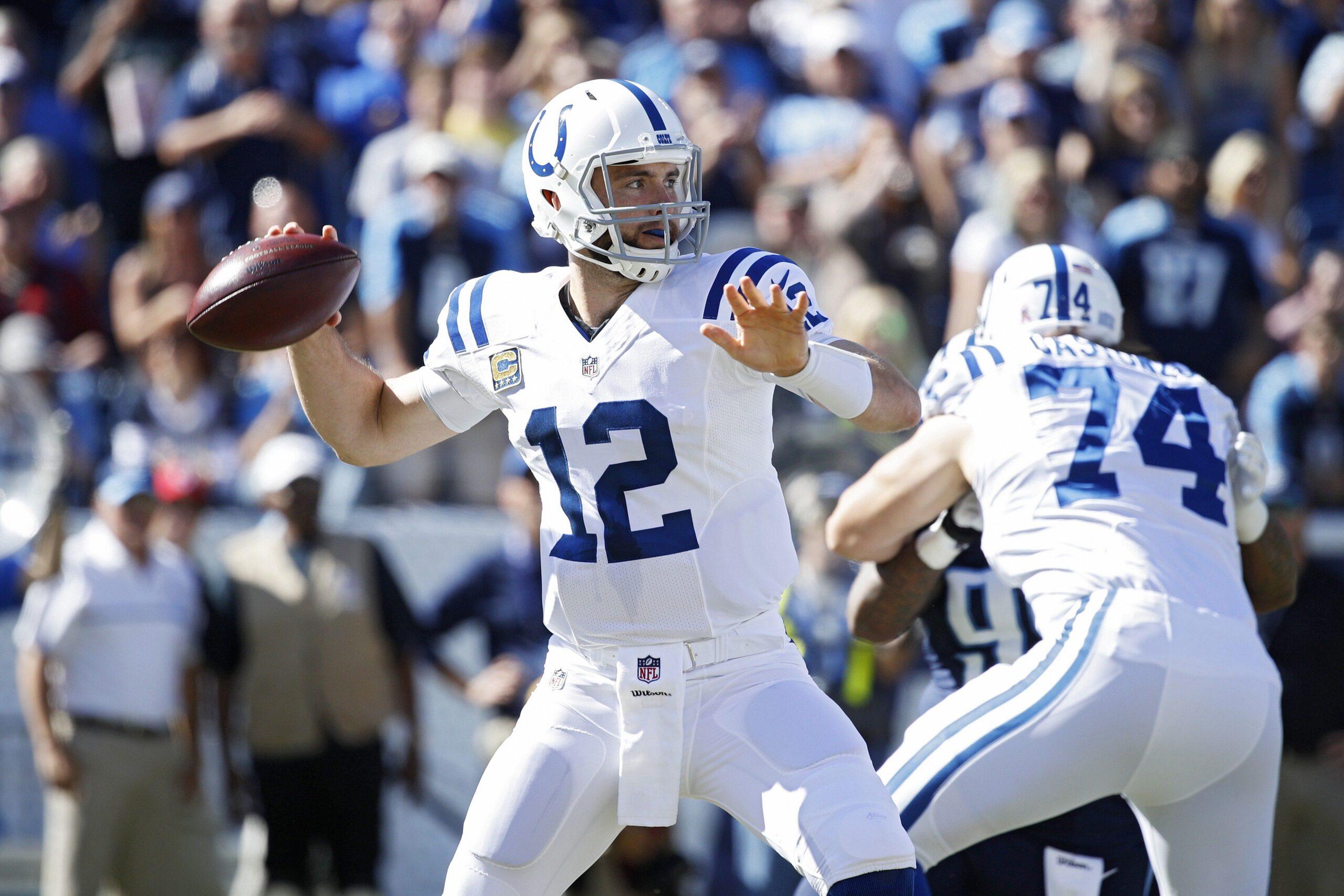Chris Ryan: Ah, the Cardiac Colts, how my blood pressure has missed the sight of you galloping towards the cliff’s edge as a heroic, bearded architecture major tries to pull you back from oblivion. Indianapolis plays tight games with one hand tied behind its back and the most valuable player in the league at the controls. Andrew Luck smashed the smashmouth Titans in the mouth on Sunday, leading the Colts to a 34–26 victory despite the best efforts of his teammates to stop him. He threw for 353 yards and three touchdowns. He had his best game of the season on Sunday, full of back-shoulder beauties and laser-beams tossed while the whole world collapsed around him. His passes were caught by men named Jack, Chester, and Swoope. What is even going on here?