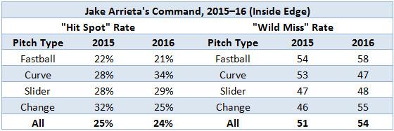 Command data from Inside Edge, collected via video scouts, tells a similar story: Arrieta may have had a greater tendency to miss badly this season, but his overall miss rates look like a push.