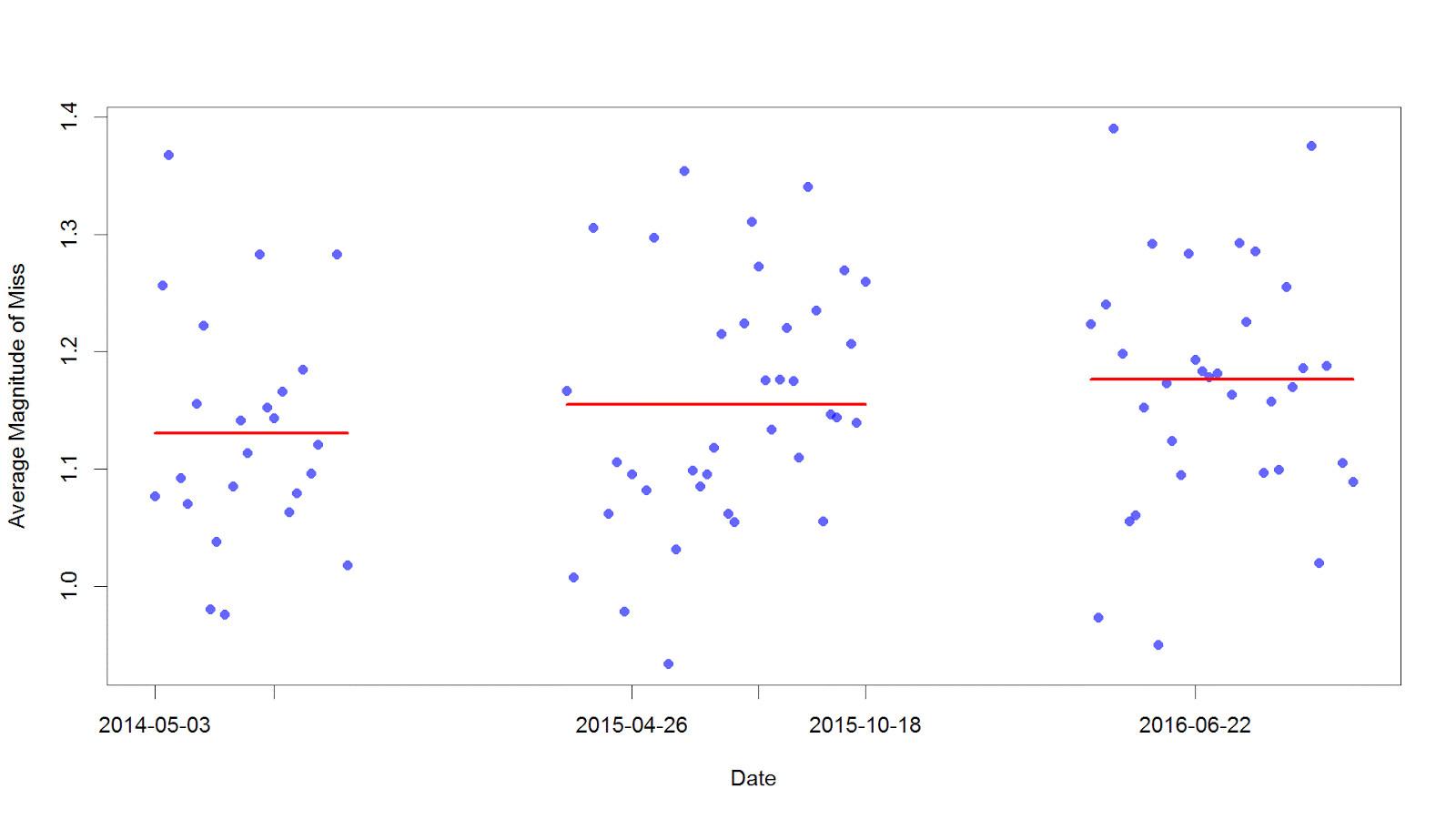 On the other hand, they also missed by more in 2015, when Arrieta was almost unbeatable, than they did in 2014, when he was merely very good. Maybe that’s because he threw harder in 2015 than he had before, which may have made his pitches more difficult to command. What we can say, based on the info we have, is that Arrieta’s command didn’t always dictate how well he pitched. In analyzing the numbers, I made no attempt to control for ballpark or opponent, but on a start-to-start basis, there was no real relationship between Arrieta’s game score and his average miss distance, as measured by Sportvision.