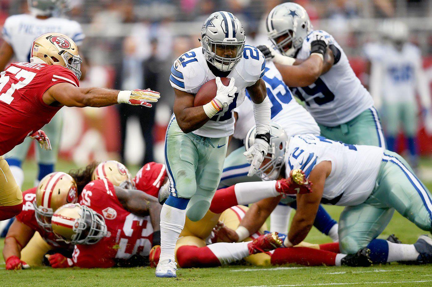Before this season began, the notion that Elliott would pile up yards behind the Cowboys’ offensive line landed right between “The Browns might go winless” and “The Patriots will win at least 11 games and the AFC East” on the spectrum of possibility. Dallas finished ninth in rushing DVOA last season, with Matt Cassel’s corpse at quarterback and Darren McFadden’s glass bones carrying the ball. Bringing in rookie QB Dak Prescott — who’s a threat to run and occasionally tilts the math even further in the Cowboys’ favor on option plays — seemed to border on cruel.