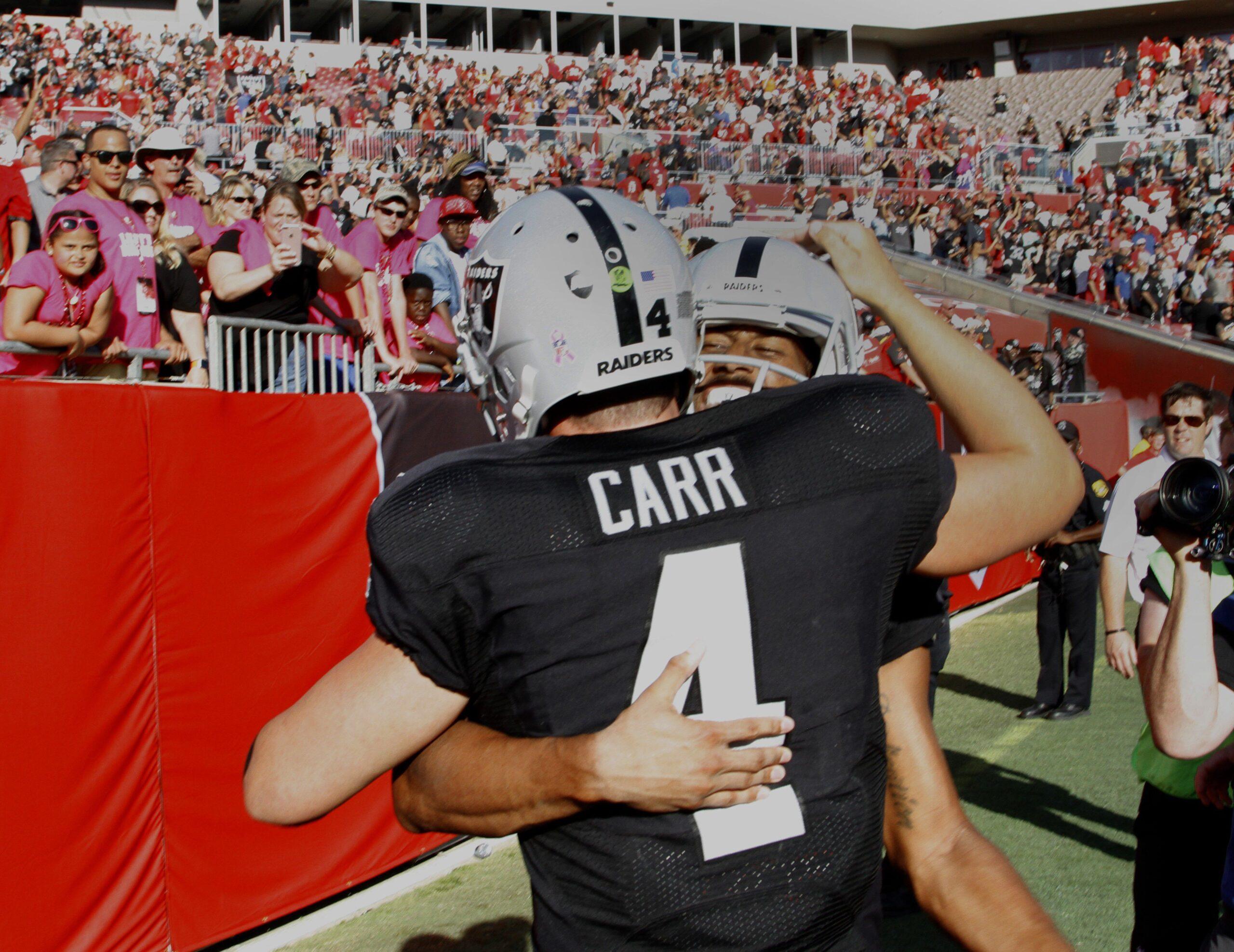 Then came the Raiders’ masterpiece: A 30–24 overtime win against the Buccaneers. They broke pretty much every rule. They were called for holding seven times — five times on offense, twice on defense. They committed four unnecessary roughness fouls and were flagged for taunting. They lined up wrong on offense twice — two illegal formation penalties — and lined up wrong on defense twice — two penalties for having 12 men on the field. They even received a flag for something called an “ineligible downfield kick.”