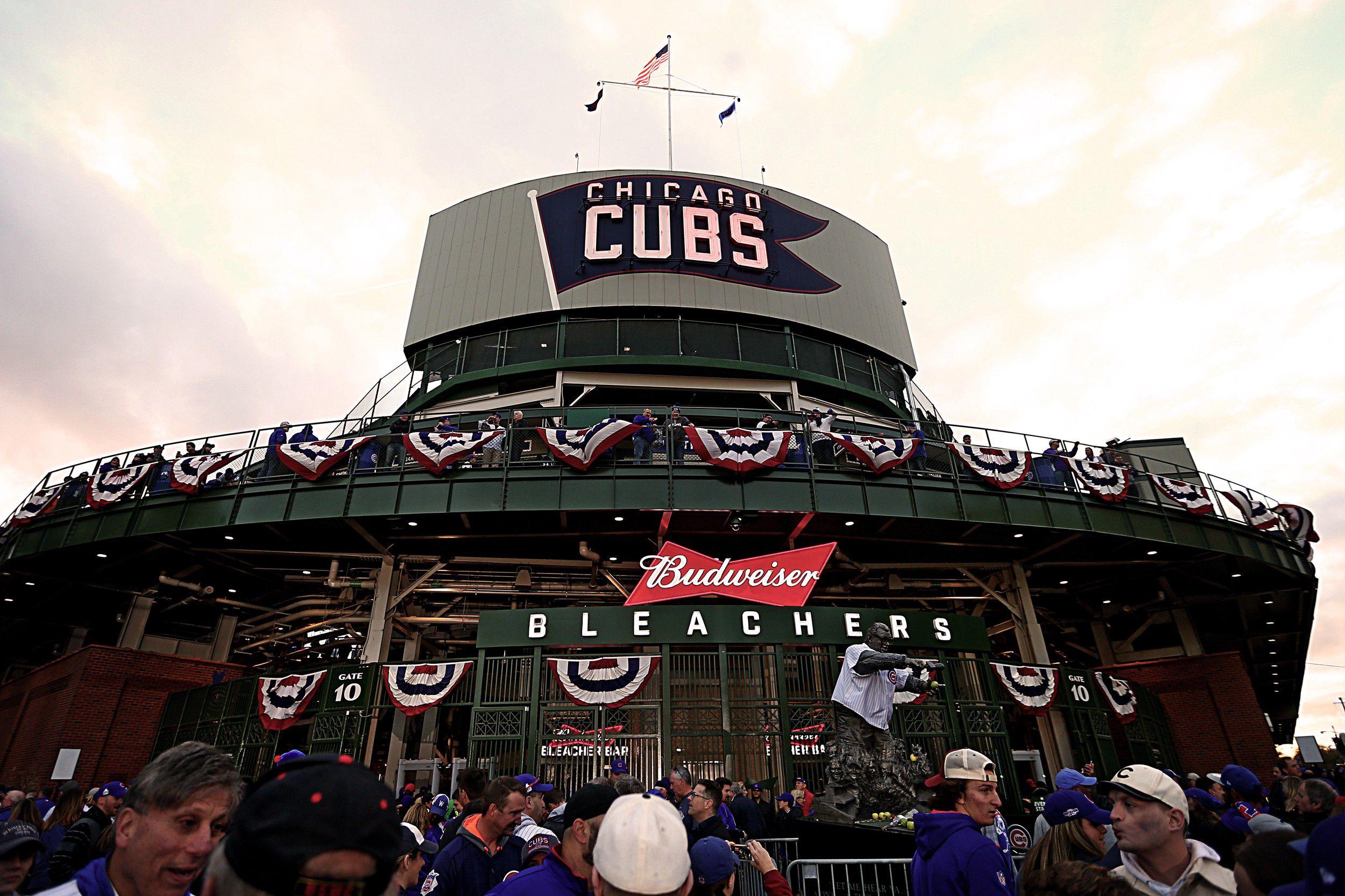 These thousands of fans congregated around the statues of broadcaster Harry Caray and Hall of Fame shortstop Ernie Banks and the famous red Wrigley Field sign on the facade at Addison and Clark behind home plate, pausing to take pictures as proof they’d seen some religious artifact. They gathered in groups of dozens as security guards pulled curtains across Waveland Avenue so Cubs players could cross the street to the gate unmolested — though someone would invariably shout “Heyward!” or “Arrieta!” through the mesh, prompting a ritualistic raising of cellphones to take pictures.