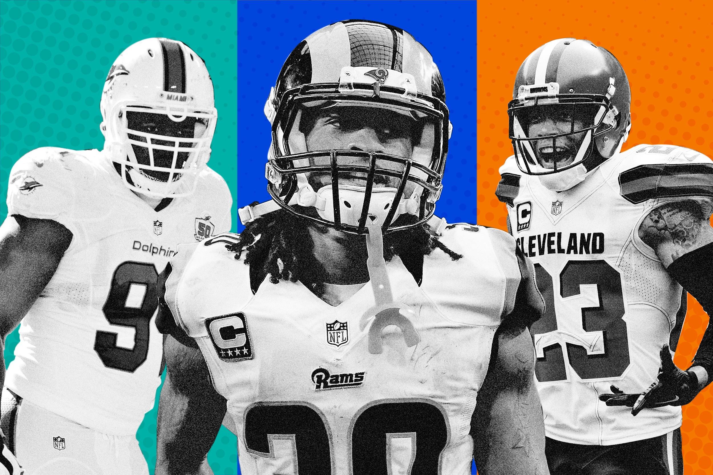 Jets quarterback Ryan Fitzpatrick parlayed a 31-touchdown performance in 2015 into a one-year deal worth up to $15 million, and everything since has been hard to watch. He lost his job to Geno Smith in Week 7 but got it back when Smith tore his ACL. The 33-year-old has thrown seven touchdowns to 11 interceptions, he has a 68 quarterback rating, the Jets are 3–5 … it’s a lost season and no one cares if Brandon Marshall wears a T-shirt to support his quarterback. The elite pass catcher needs a new one.