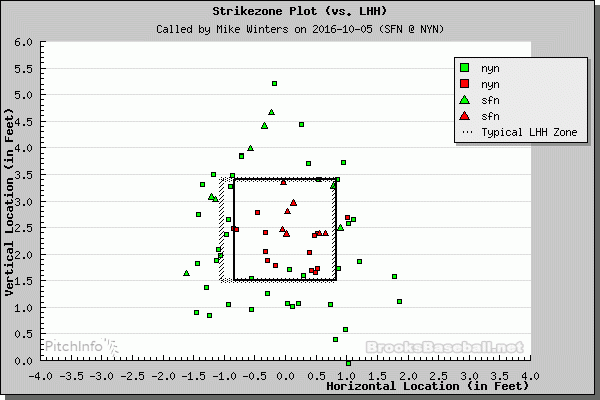 Just look at the strike zone plots to left-handed and right-handed batters from Wednesday’s wild-card game.